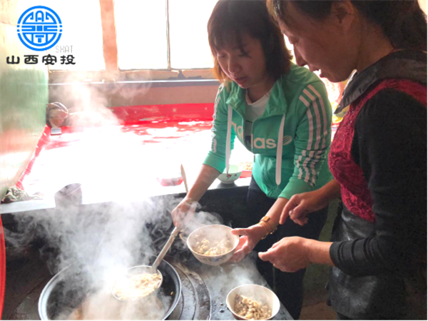 “吃派饭”是中国共产党在革命运动时期形成的好传统好作风,因为各项工作需派干部下乡,干部一般不自己起伙,就分散到农民家轮流吃饭。“吃派饭”要求干部按规定交钱和粮票,不能搞特殊,不能单独开灶立火,必须与农民同吃饭。9月18日上午,省安投公司精准扶贫入户班车第四次开进五寨县新寨乡殷家湾村、羊道沟村,以“摸民情,吃派饭”为契机开展入户结对帮扶活动。